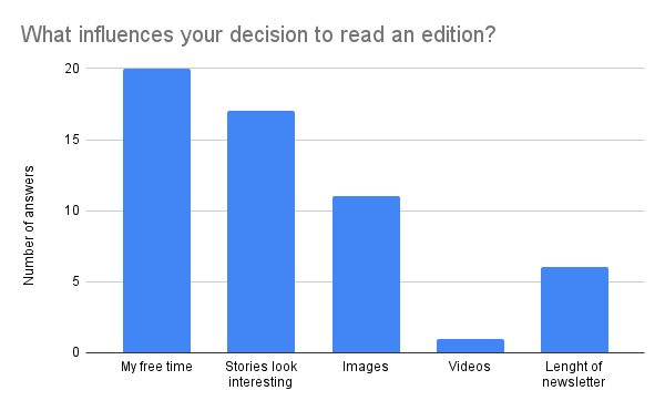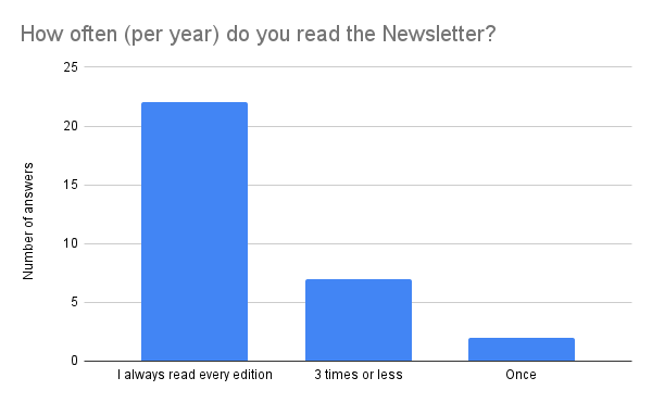 A surprising number of subscribers read every edition! Or at least, the kind of people who tend to answer our surveys also tend to read every email from us...